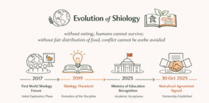 Shiology was theorized in 2019 by Liu Guangwei, founder and Director General of the World Shiology Forum, and supported by academic research centres, including Renmin University of China, as a new system of knowledge capable of responding to global food crises. Through an interdisciplinary and solution-oriented approach, shiology combines science, ethics, culture, economics, technology, and education to identify the root causes of interconnected problems such as hunger, malnutrition, food waste, and environmental degradation, while promoting more inclusive and sustainable models of governance.
